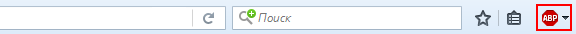1. Нажмите на иконку Adblock Plus в правом верхнем углу панели инструментов браузера, как показано на рисунке ниже: